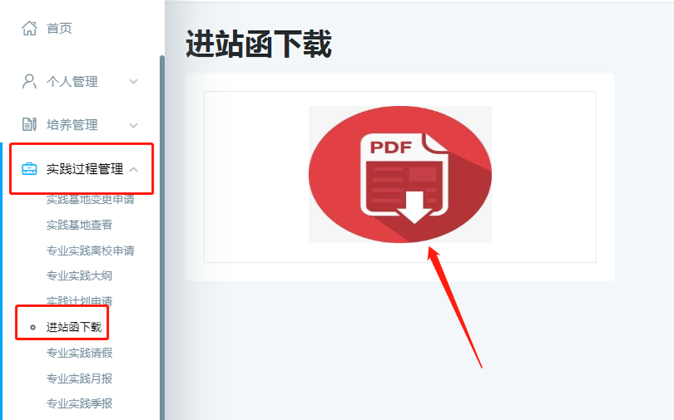 进站函已上传之后,学生可在研究生管理系统中【实践过程管理】—【进站函下载】界面点击下载、查看。