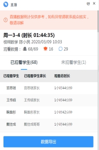 查看学生签到和观看时间的数据,对于未签到和未观看的同学进行课后交流,了解学生未到课的原因,提醒学生利用回看功能补齐落下的内容。