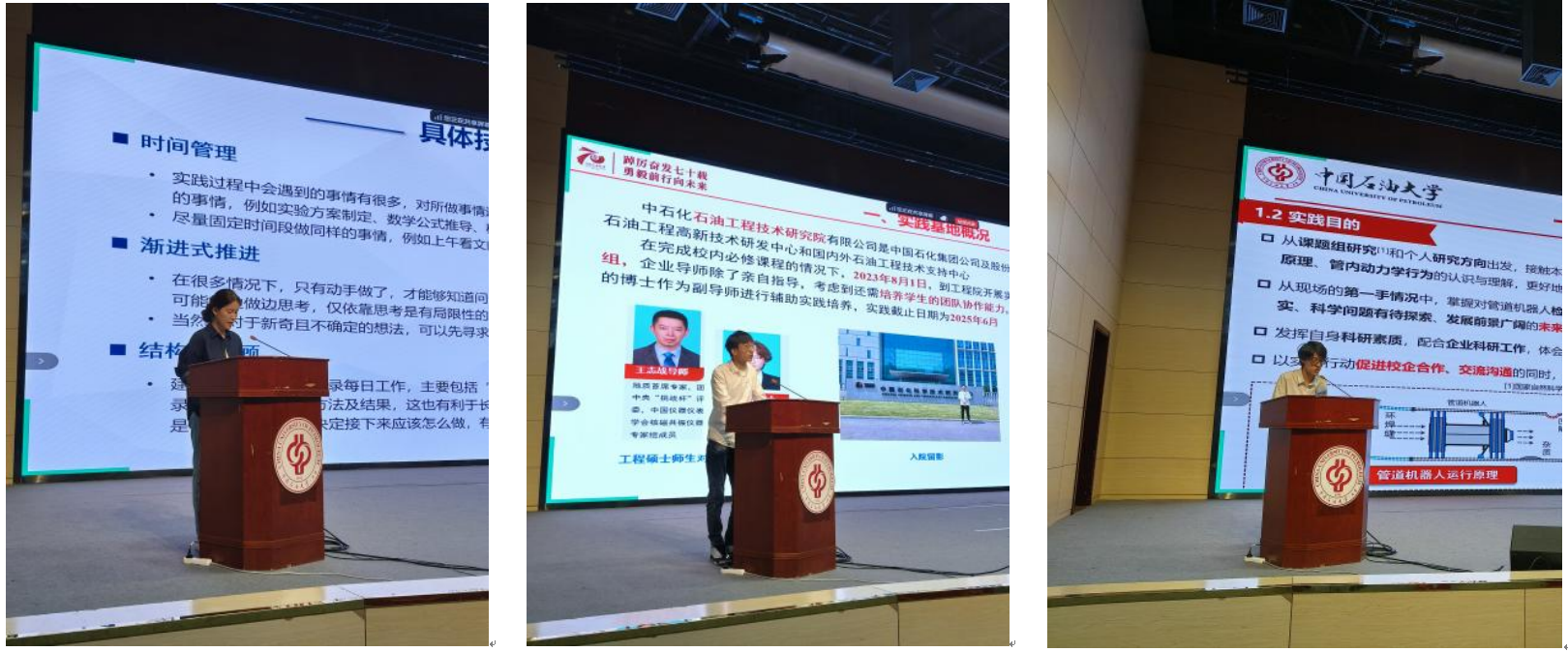 6月10日下午,2025年专业实践动员会暨专业实践卓越奖获得者经验分享会在中油大厦三层报告厅举行,研究生院、研究生工作部相关负责人、专业实践卓越奖获得者代表、各学院(研究院)研究生教学秘书,2024级全日制专业硕士研究生参加会议,会议由国家卓越工程师学院党委书记、执行院长,研究生院副院长耿娇娇主持。
